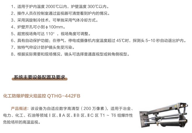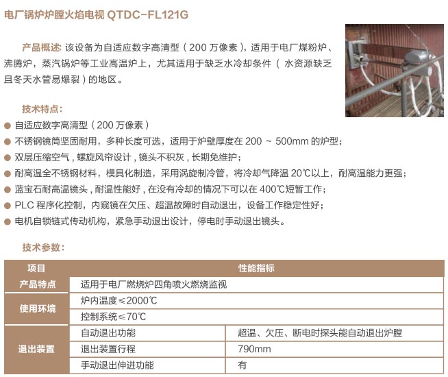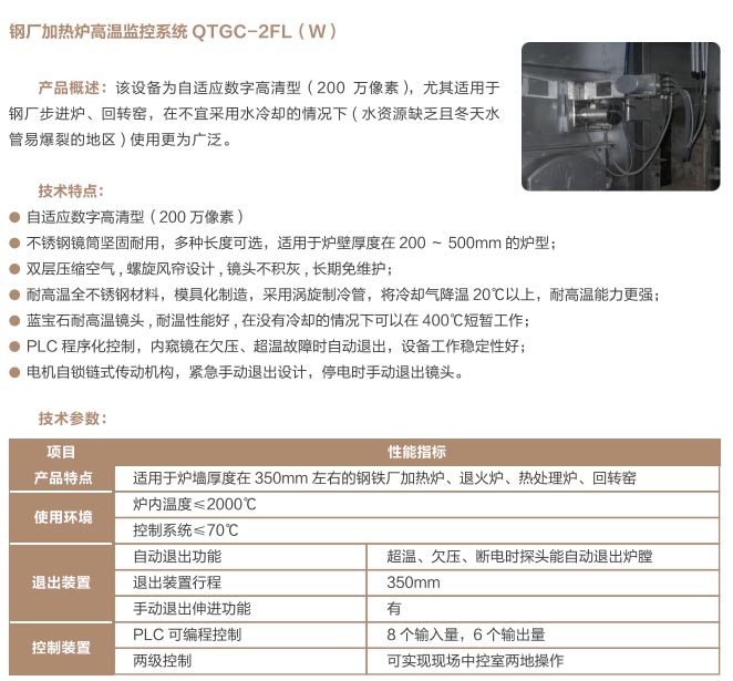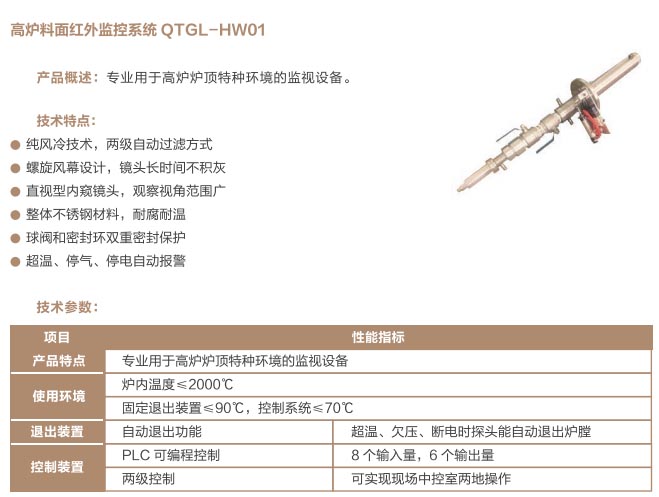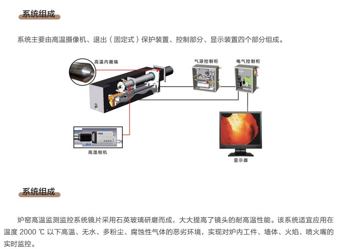 爐窯高溫監(jiān)測監(jiān)控系統(tǒng)是專為工業(yè)高溫爐窯監(jiān)測監(jiān)控的設(shè)計的智慧管理平臺,是針對爐壁開孔和爐窯視像有嚴(yán)格要求的高溫爐窯而研制的高溫工業(yè)電視。利用特種高溫孔式光學(xué)鏡頭,鏡頭設(shè)計采用中繼物鏡,兩次成像系統(tǒng),使像面在遠離觀察孔的CCD靶面上形成,最大限度的減少進入攝像機的熱輻射,致力為冶金、電力、建材、礦山、化工等行業(yè)服務(wù)。我公司研發(fā)主導(dǎo)產(chǎn)品已擁有第三代SG內(nèi)窺式高溫工業(yè)電視系列、爐壁式高溫工業(yè)電視系列、內(nèi)窺式拐角高溫工業(yè)電視系列、鍋爐汽包水位電視系統(tǒng)等成套設(shè)備,以及各種風(fēng)冷防護罩,水冷防護罩,渦旋制冷防護罩等工業(yè)監(jiān)控設(shè)備配套產(chǎn)品。產(chǎn)品廣泛應(yīng)用于鋼鐵廠加熱爐、退火爐,電廠鍋爐爐膛火焰、水泥廠回轉(zhuǎn)窯窯頭看火、篦冷機看料、玻璃廠玻璃熔窯等特殊高溫環(huán)境。幫助用戶進行工業(yè)爐實時電視監(jiān)測及控制,解決設(shè)備的運行故障等,對用戶改善產(chǎn)品質(zhì)量、降低成本、安全生產(chǎn)有著獨特的成效。受到了用戶的一致好評。